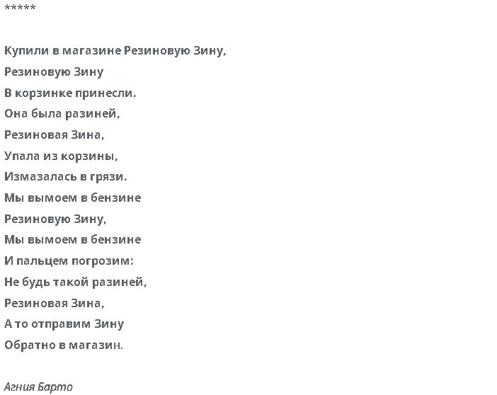 резиновую Зину купили в магазине стих