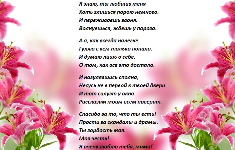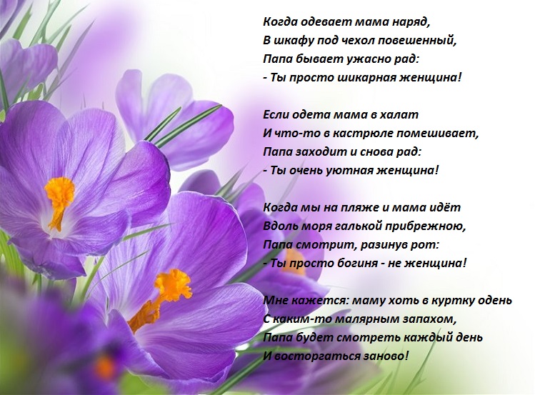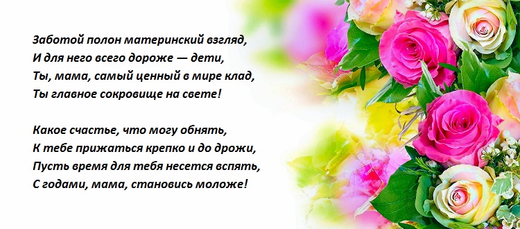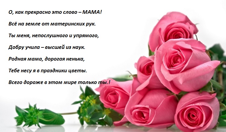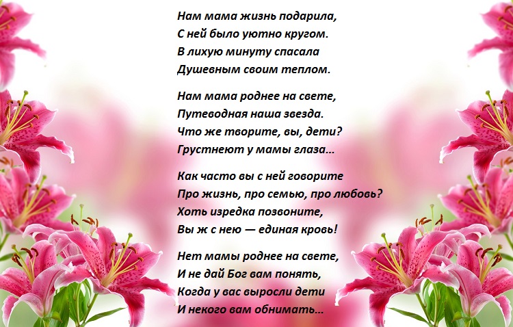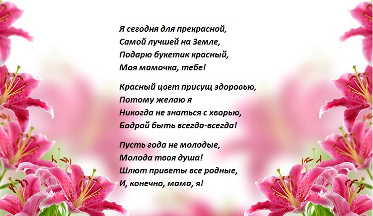 Маме посвящено много стихов, песен, рассказов. Ее принято поздравлять от всей души, радовать стихами по поводу и без.