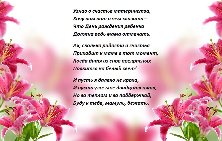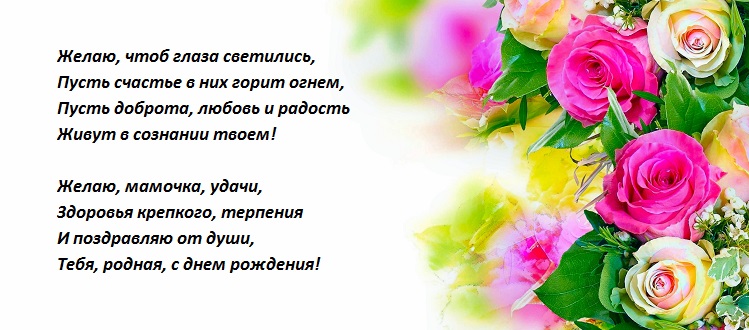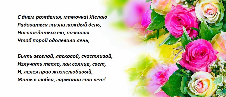 Короткие душевные стихи прекрасно подойдут для оформления поздравительной открытки. Они идеальны для тоста как в маленькой, так и большой компании. Прочитав такие строки, вы тронете до глубины души не только вашу мамочку, но и всех присутствующих гостей.
