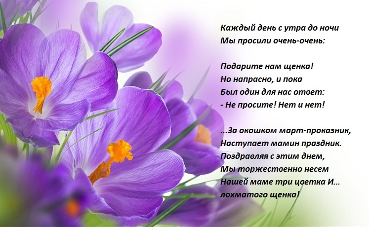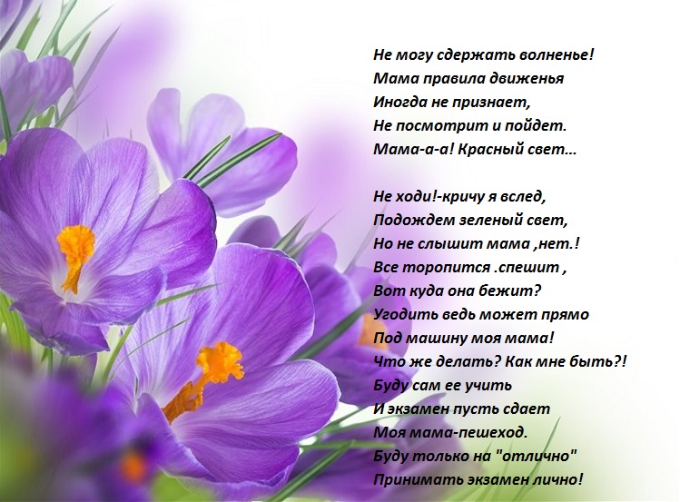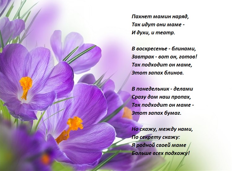 PS: Стихи очень важны для каждого человека. Это облачко тепла, радости, любви. Вместе со стихами мы дарим не только теплые слова, мы дарим секунды счастья, радостные мгновенья нашим мамам.