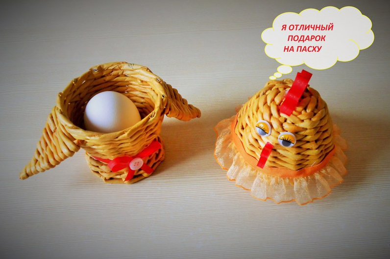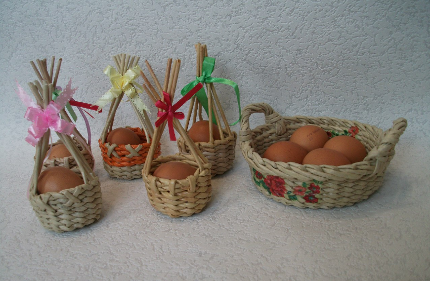 Можно сплести маленькие корзиночки для одного яичка, которые смотрятся очень оригинально.