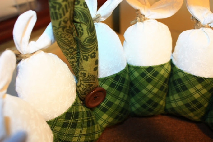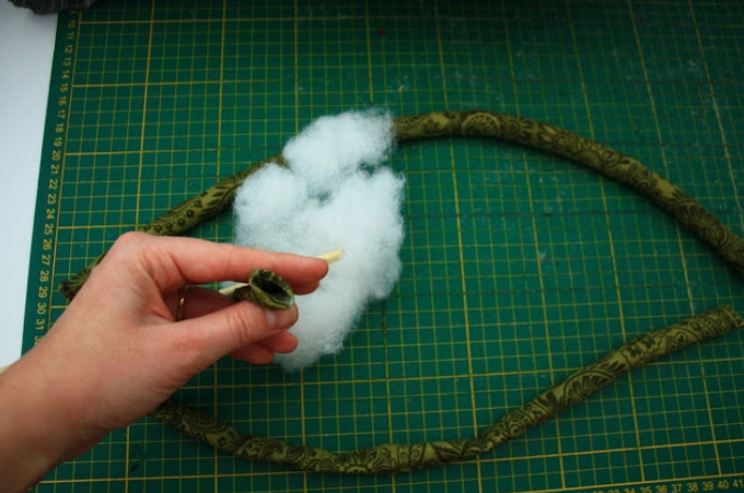 Веревочками стягиваем уши и наполняем синтепоном.