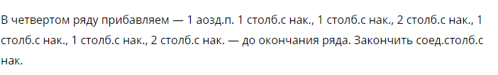 2 возд.п. , затем столб.с нак. Получившуюся ажурную п. вяжем семь столб.с нак. Закрыть ряяд столб.с нак. Еще один ряд и петли зашиваем.