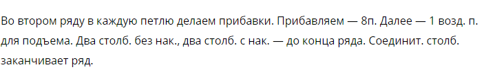 Вяжем по кругу столб.без нак. Крючок вставить в верхнюю возд.п. начала круга.