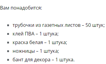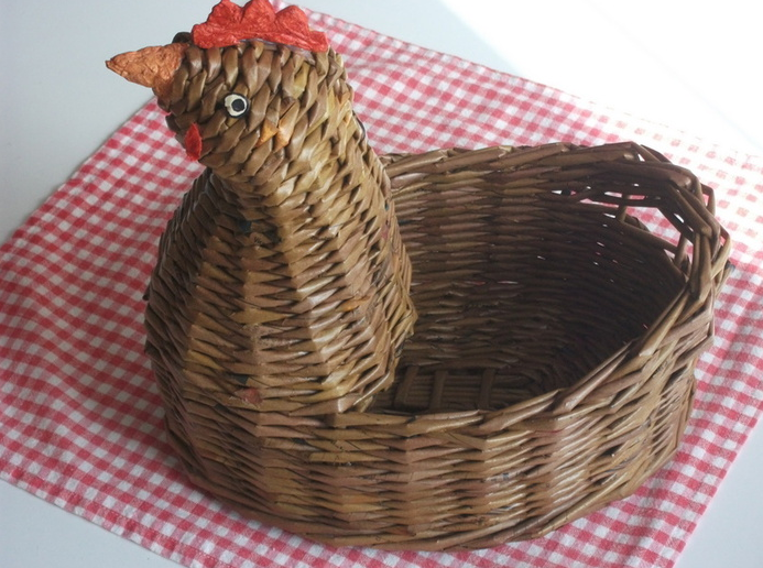 Для плетения корзин используют газету, которая скручивается в трубочки и обрабатывается специальным способом. Конструкция получается настолько прочная, что выдерживает поход на службу в церковь. Если покрыть корзинку лаком, она не будет отличаться от изделия из натуральной лозы.