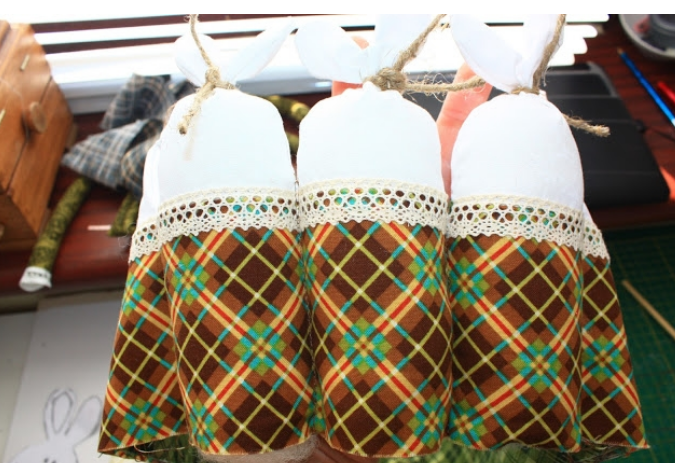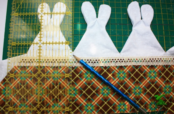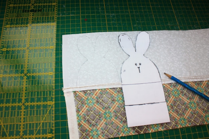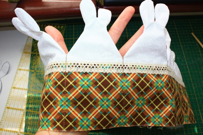 Сшиваем белые стороны по силуэту зайцев.