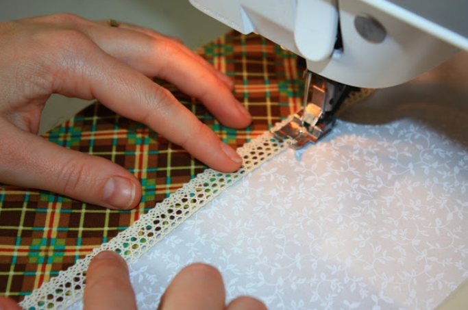 Пришиваем кружево, чтобы украсить внешнюю сторону.