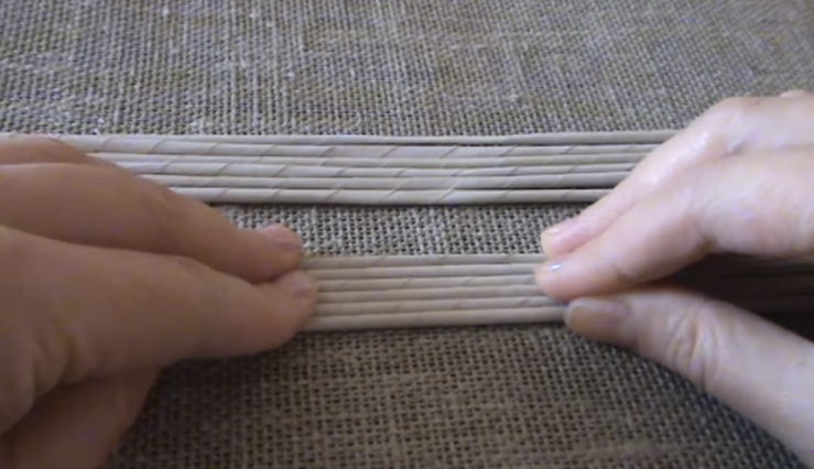 Собрать трубочки по шесть штук. Руками немного примять, чтобы они стали плоскими.