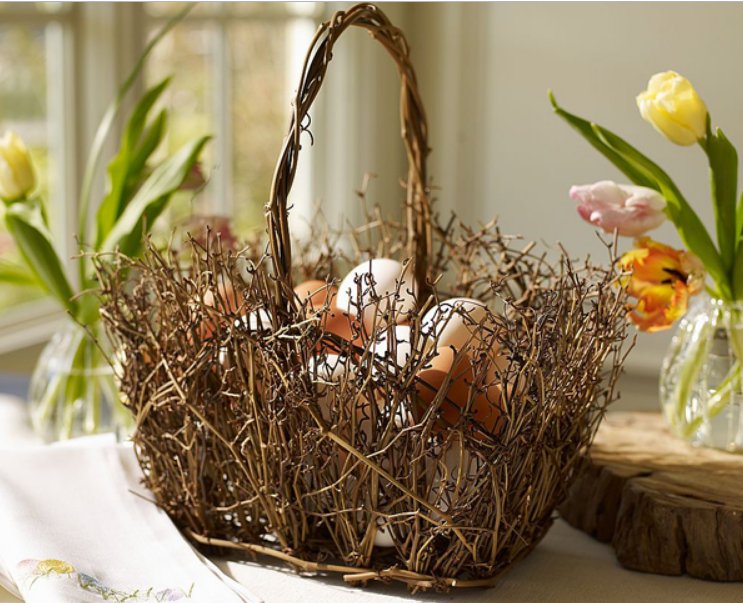 Уютная маленькая корзинка для яиц внесет очарование в праздник, украсит дом или послужит отличным подарком. Предлагаем воспользоваться идеей — в хозяйственных магазинах продается ерщик для прочистки труб, используйте его при плетении и корзина будет держать форму.
