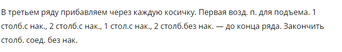 Одна петля воздушная и столб.без нак. Ряд закрыть столб.без нак. Провязываем еще один ряд.