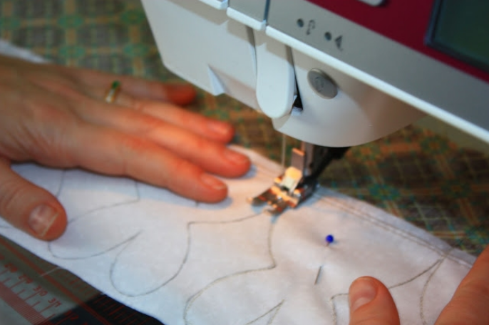 Шаблон переносим на подготовленный материал. Сшиваем бока и пришиваем донышко.