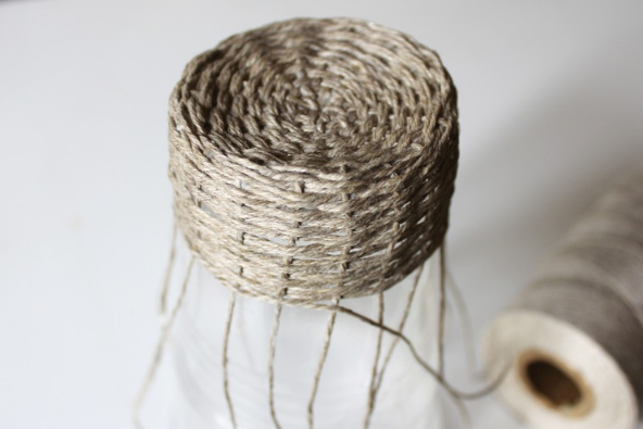Таким образом оплетаем стакан.