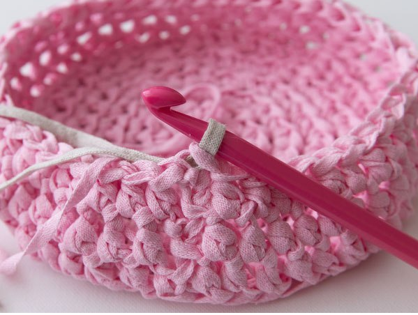 - Корзинка из трикотажной пряжи крючком мастер класс