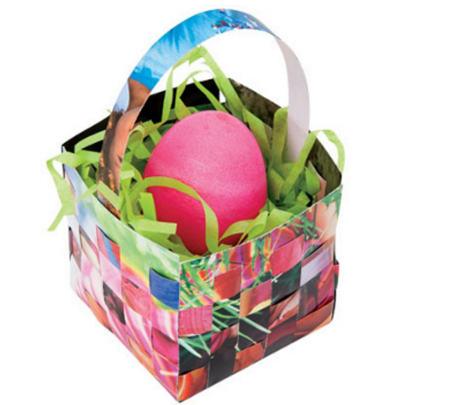 Так выглядит готовая корзинка, куда можно поместить покрашенные яйца к пасхе.