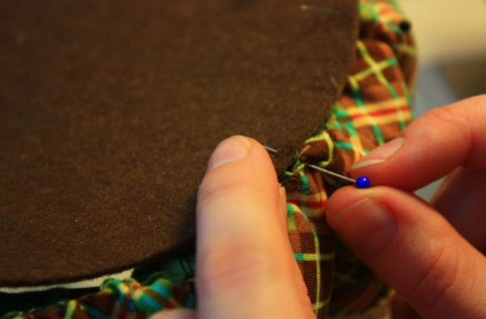 Из фетра вырезаем кружок для дна и пришиваем его.