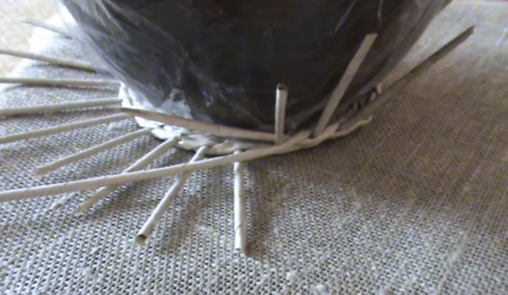 Чтобы было удобно плести, можно поставить горшок и плести вокруг.