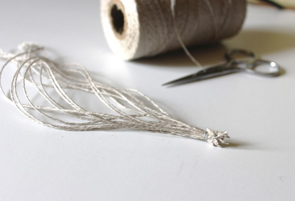 Отрезаем шпагат, 16 штук, длиной 20 сантиметров и связываем в пучок.