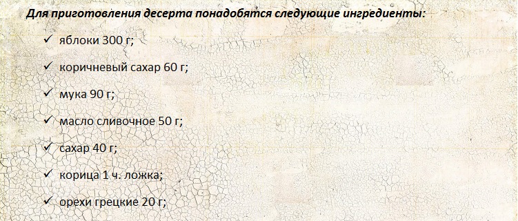 • Крамбл имеет низкую калорийность из-за большого количества фруктов. Если использовать вместо обычного сахара – коричневый, крамбл можно без опасения за свою фигура вводить в ежедневный рацион.