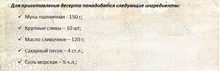 В сливе необходимо обязательно удалить косточку. Для приготовления лучше использовать половинки слив. Фрукт выбирайте плотный, твердый, тогда его можно карамелизировать.  Карамелизация придает сливовому десерту особенного аромата.
