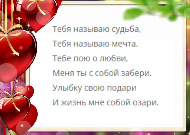 Амур стрелою с именем (имя) метко попал в мое сердце! И теперь в нем живет взаимная любовь.