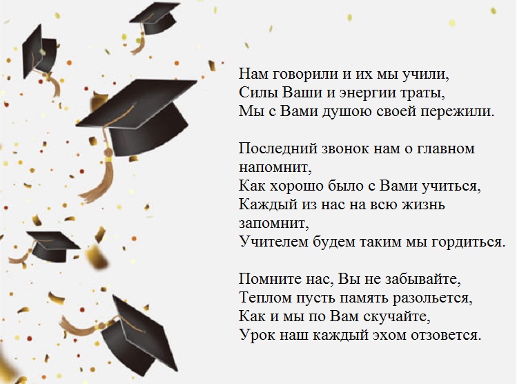 Для каждого выпускника прощание со школой вызывает разные эмоции, на задний план отходит все неприятное, в душе появляется ностальгия по прошлым детским годам, волнения о предстоящей взрослой жизни. В такие моменты хочется подобрать самые теплые, трепетные слова. Поблагодарить учителей за их непосильный вклад в наше образование, за недюжинное терпение и понимание.