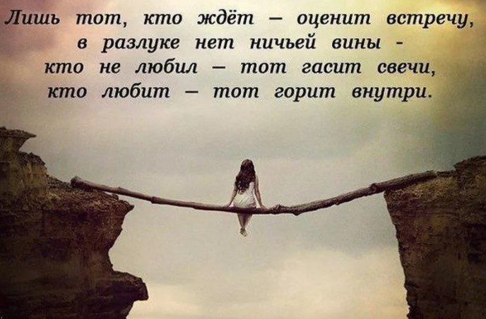 - Я живу только потому, что знаю, ты где-то рядом и мы обязательно скоро встретимся.