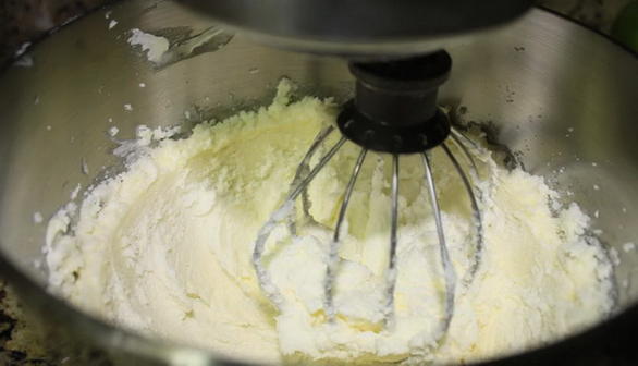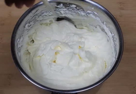 Соединяем остывшую основу и масляную смесь, перемешиваем с помощью миксера.