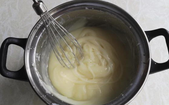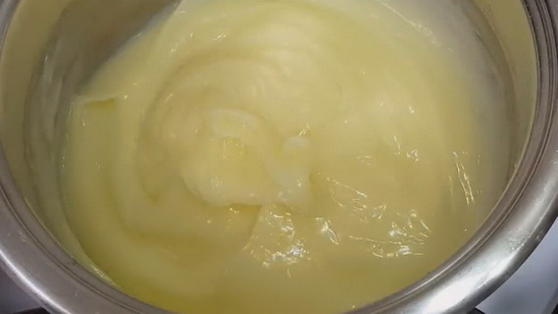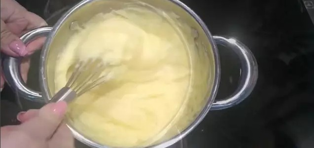 Ставим кастрюлю с содержимым на конфорку, мощность делаем минимальной, все время помешиваем. После закипания провариваем заварной крем пару минут до загустения.