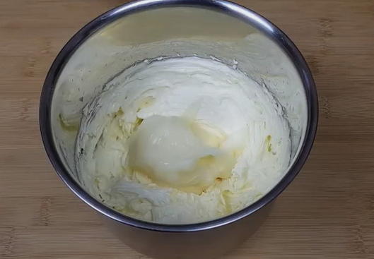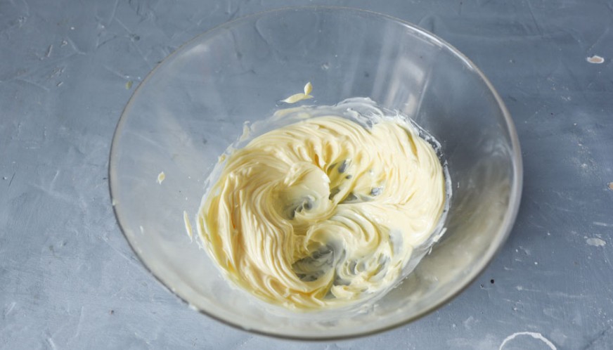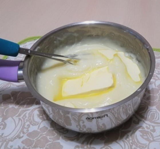 Совет! Чтобы сливочное масло было мягкое, достаньте его из холодильника заблаговременно, его температура должна быть комнатной, так же, как и заварная основа в момент смешивания этих продуктов.
