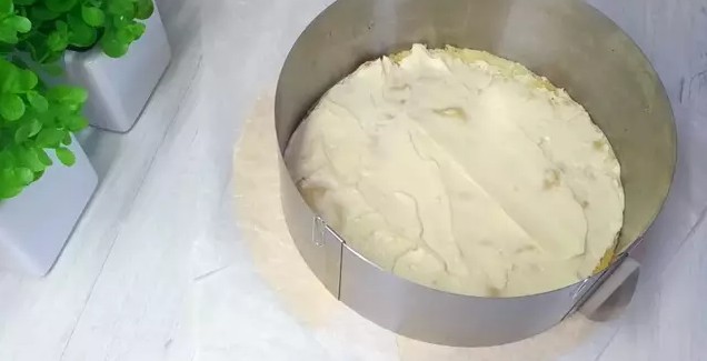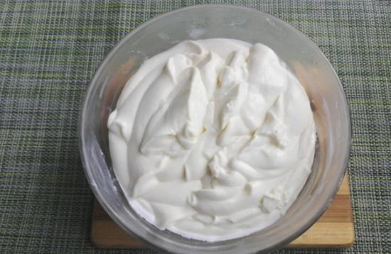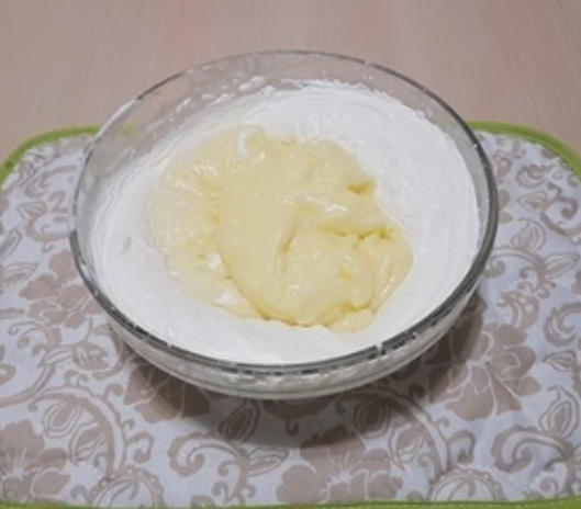 К остывшей основе добавляются сливки, взбитые с сахарной пудрой.
