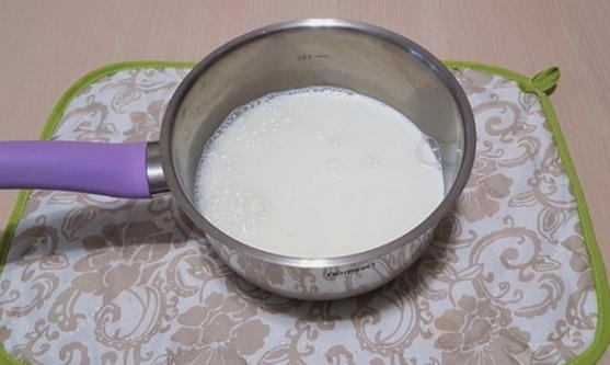 Нагрейте молоко в кастрюле или сотейнике. Оно должно быть горячим.