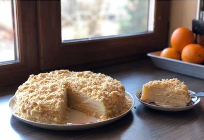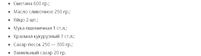 Данный вариант аналог крема французской кухни, где в рецептуре используются молоко и крахмал. Но, в нашем случае молоко заменяет сметана, жирностью, не менее 20%, а крахмал — мука. Крем используется, как для обмазки торта снаружи, так и для прослойки коржей.