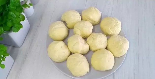 После замеса тесто делим на части, в данном примере их 11. Далее ставим на один час в холодное место.