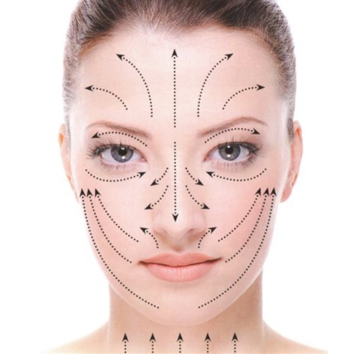 Протирать ледовыми косметическими кубиками необходимо придерживаясь массажных линий: