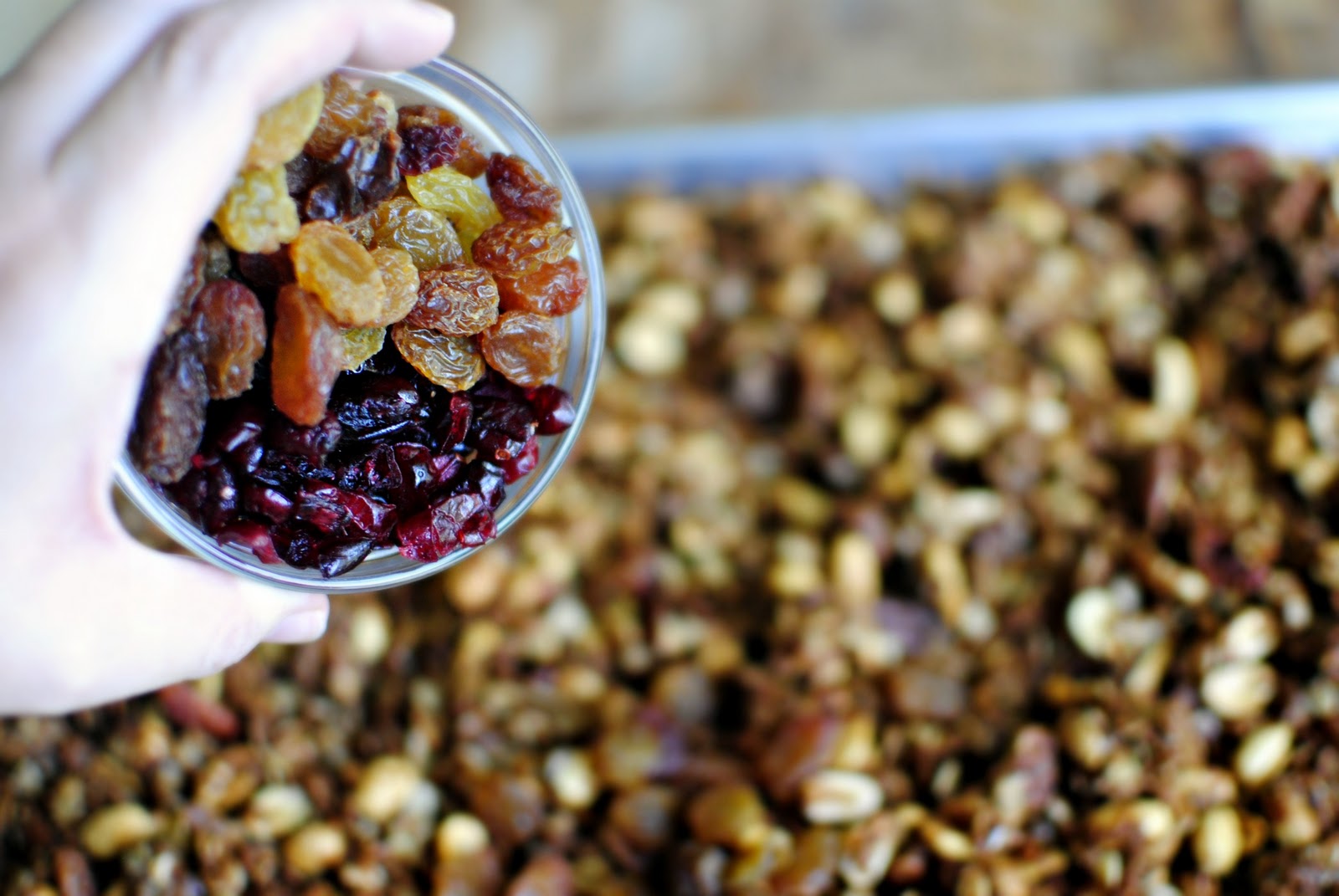 Тесто должно получится мягким, податливым, но не липнущим к рукам и столу. В таком виде перекладываем его в глубокую кастрюлю, присыпаем мукой и оставляем подниматься в теплом месте на 30 минут. Возможно, кому-то потребуется 50 мин., все зависит от равномерности нагрева и пышности теста. Как только верхушка начала вылазить из кастрюли, приминаем тесто обратно и всыпаем в него наши сухофрукты и орехи. Перемешиваем тесто еще раз и снова ставим подниматься в тепло.