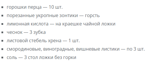 - вишневые и черносмородиновые листочки — по 10 шт.