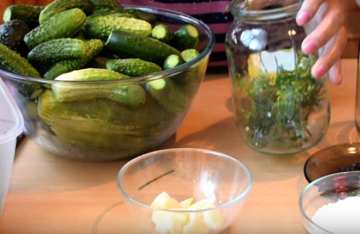 ВАЖНО: Огурцы перед засолом должны находиться в холодной воде некоторое время. При этом огурчики напитываются влагой и в дальнейшем станут упругими и хрустящими.