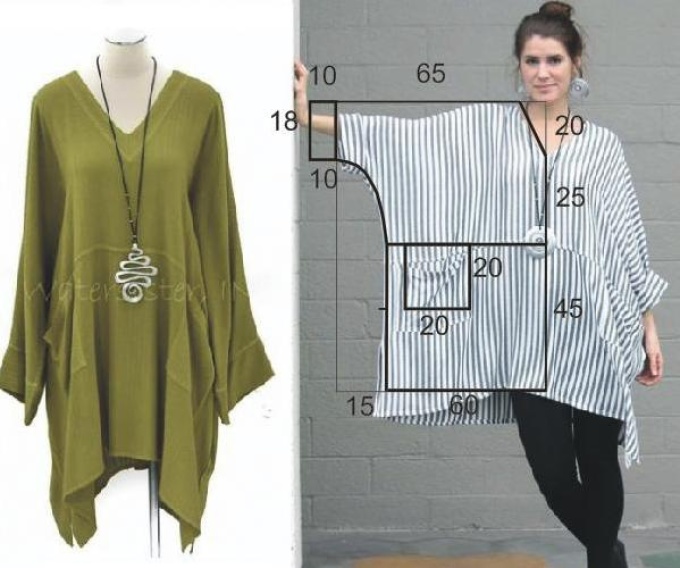 Берем материал, шириной 1,5 метра — два полотна.Измеряем бедра, талию, рукава от горловины, обхват руки, которая находится ниже локтя.