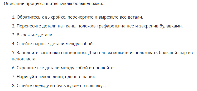 Отличается от других кукол размером ног, которые относительно пропорций тела, достаточно большие. Очень уютно смотрится в интерьере, обладает своим шармом.