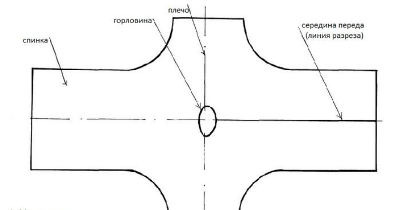 - Вниз от сгиба мерим 2, 5 сантиметра, в сторону — 9. Получилась горловина.