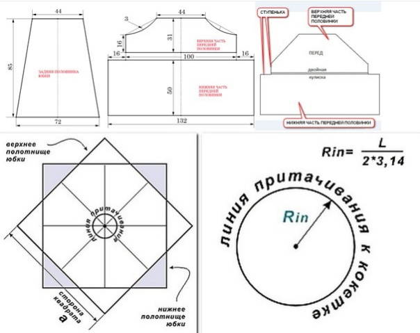 При пошиве пышных юбок, размер талии умножают на 1,3 или 1,5. Для юбки более пышной, окружность талии надо умножить на 1,6 или 2. Полученное число и будет необходимая ширина ткани для пошива. А длина будет равна длине юбки + 6 см на припуски.