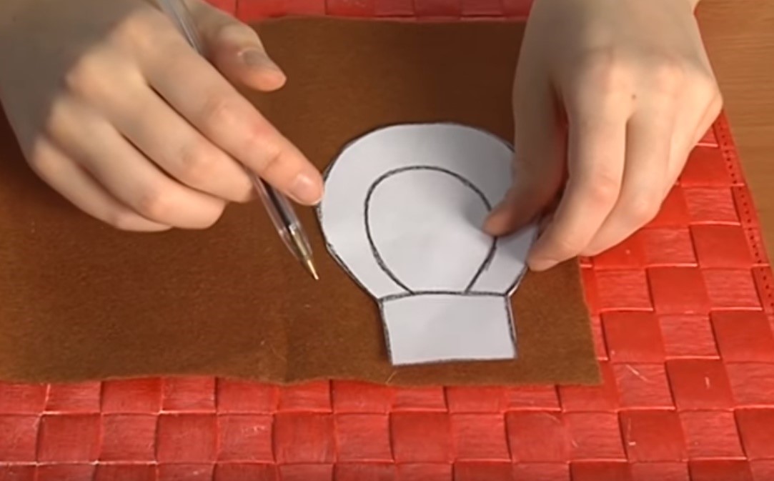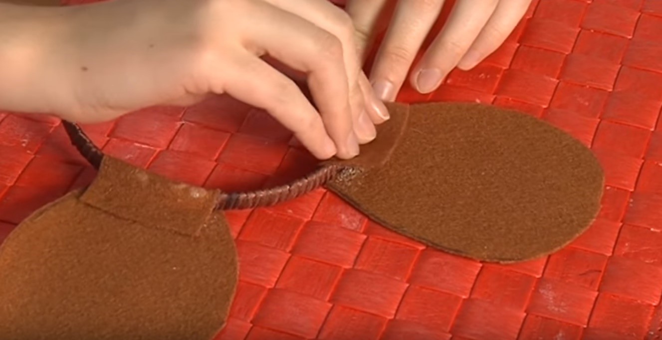 1.Изготовим повязку — в фетре вырезаем овал, делаем две прорези, протягиваем резинку.