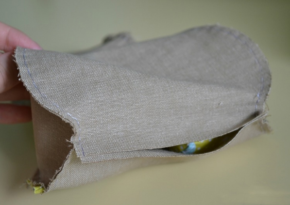 Выворачиваем на лицо и делаем шов, на расстоянии 4 сантиметра, от первого.