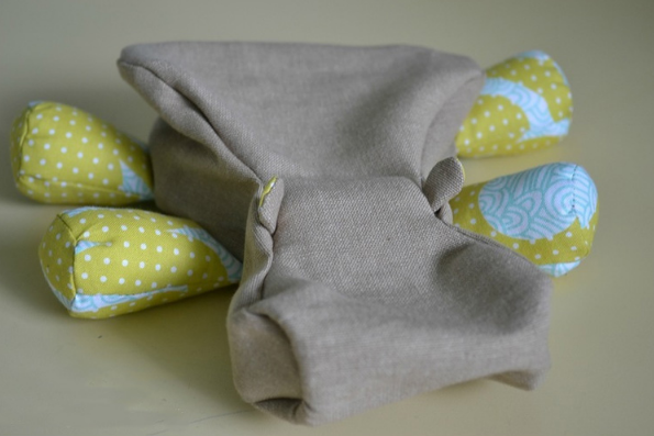 Прошейте все части на машинке или вручную. Внизу спины оставьте отверстие и выверните.