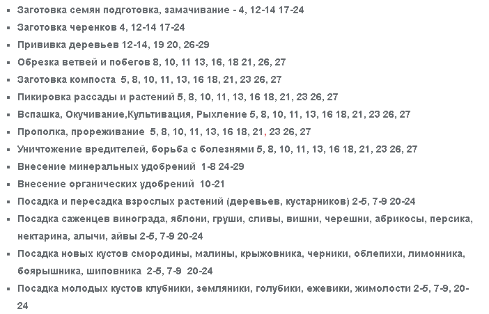 - Лунный календарь садовода и огородника Урала