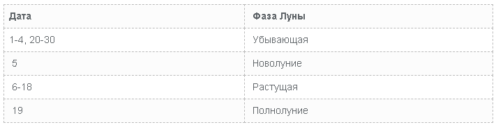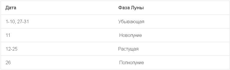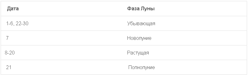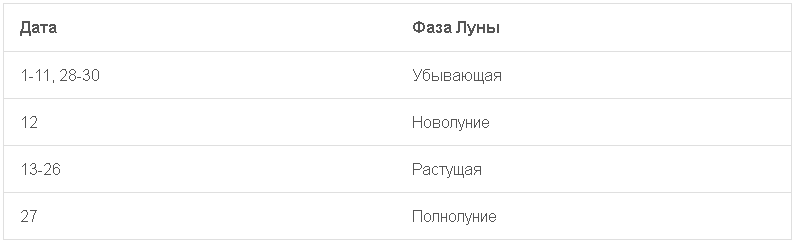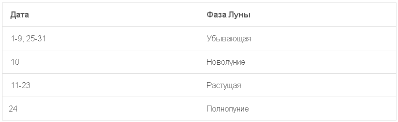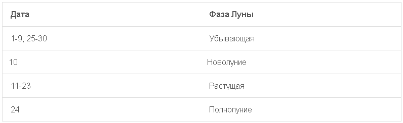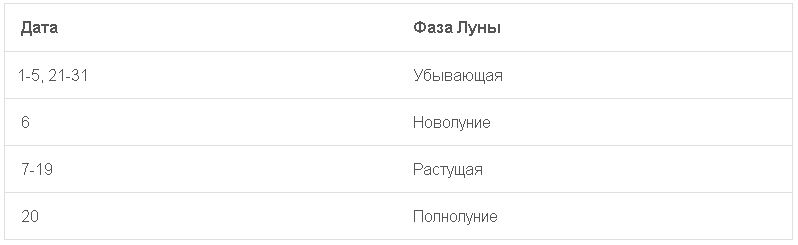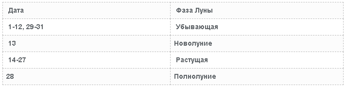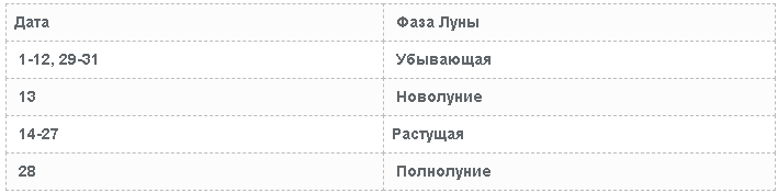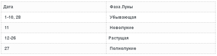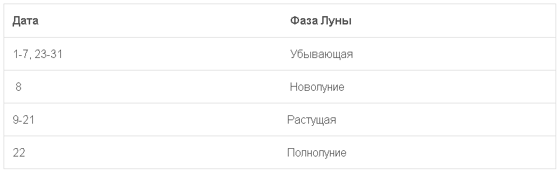 | Дата | Фаза Луны |