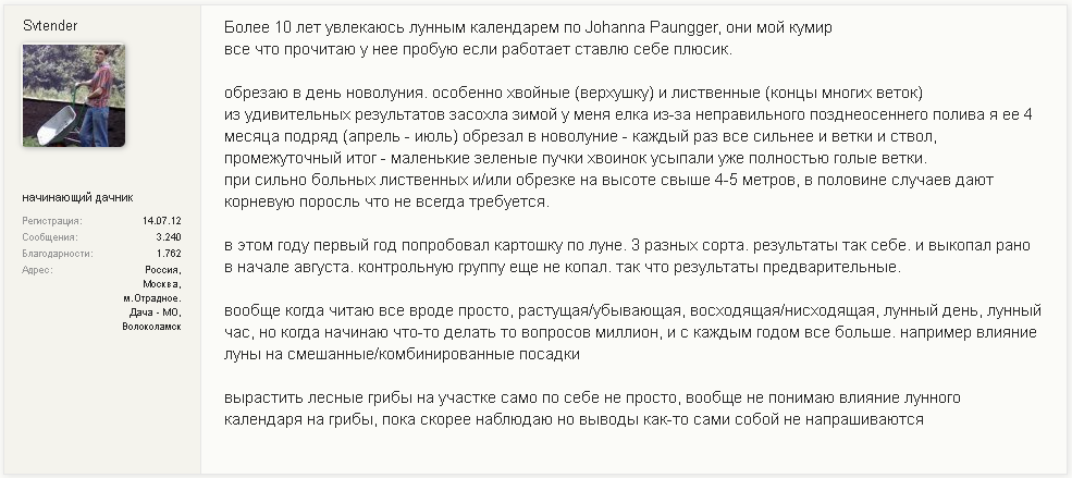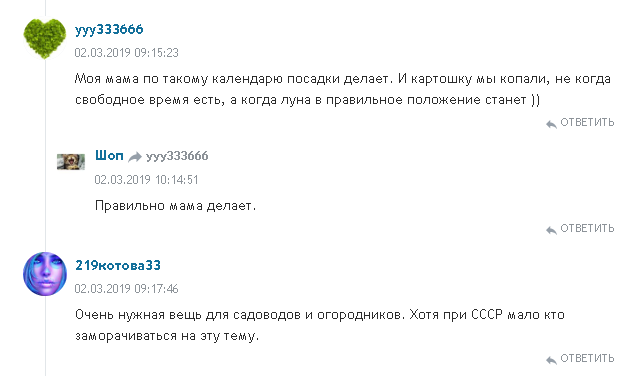Отзывы пользователей лунным календарем огородника, 3 варианта