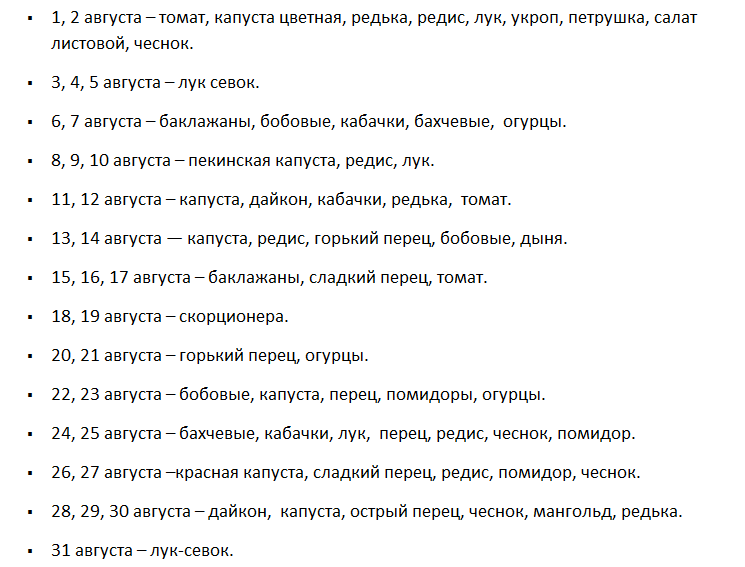 В августе еще высаживают некоторые культуры в открытый грунт. Такие мероприятия возможны только в южных регионах Белоруссии. В северных, можно проводить посев и посадку овощных культур в теплицы.