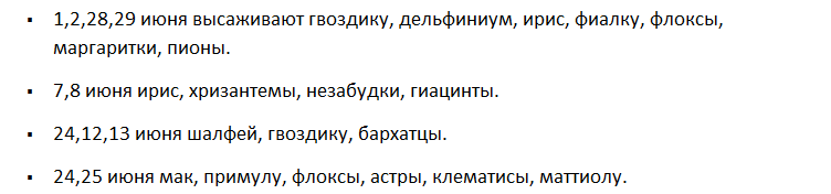 В июне высаживают майскую рассаду. В полнолуние 5 июня можно проводить посадку растений, деревьев. В новолуние 21 июня никаких огородных работ не проводят. Максимум, что можно сделать в этот день, так это опрыскать сад, огород от вредителей.