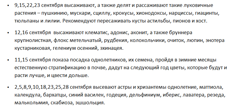 В сентябре высевают и высаживают цветы под зиму, чтобы ранней весной они быстро шли в рост. Закаленные морозами, такие растения с легкостью переносят небольшие заморозки.